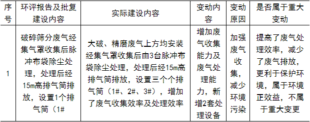 對比項目實際建設(shè)內(nèi)容和環(huán)評報告及批復(fù)文件,項目變動情況如下: